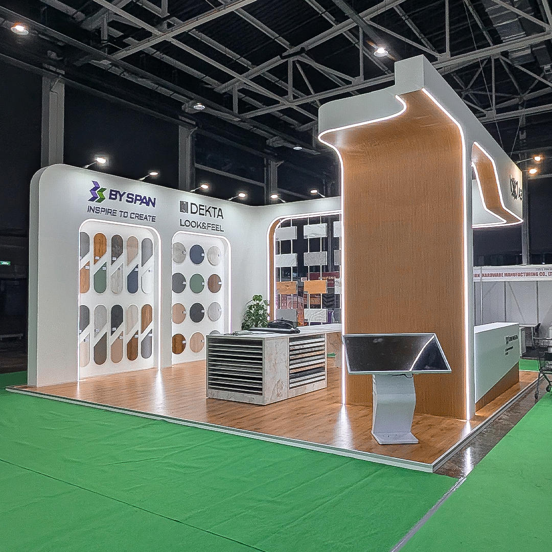 Our team specializes in creating custom exhibition stands. We ensure timely and cost-effective construction. Additionally, we have our own inventory of exhibition equipment stored in-house.